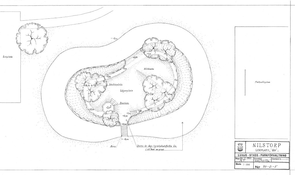 ”Det är synd om barnen. De får inte vara på gårdarna, inte på gatorna och i stadens parker har man det så fint, att de inte passar där heller”. Det säger Lunds stadsträdgårdsmästare Oscar Ahlström 1952 i en intervju där han presenterar skissen till den nya lekplatsen Nilstorpsängen.