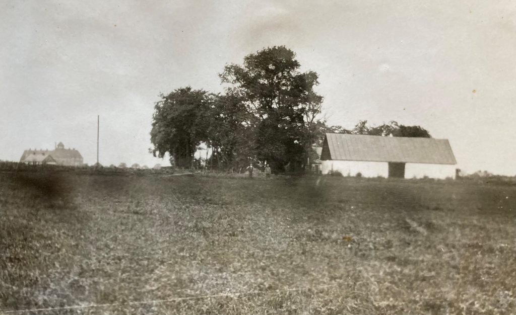 I Gula huset eller statarbostaden från 1875 bodde tegelbrännaren. Huset låg en bit öster om tegelbruket. I bakgrunden syns folkskoleseminariet som idag ligger strax norr om Blocket. Foto: Nils Ljung.