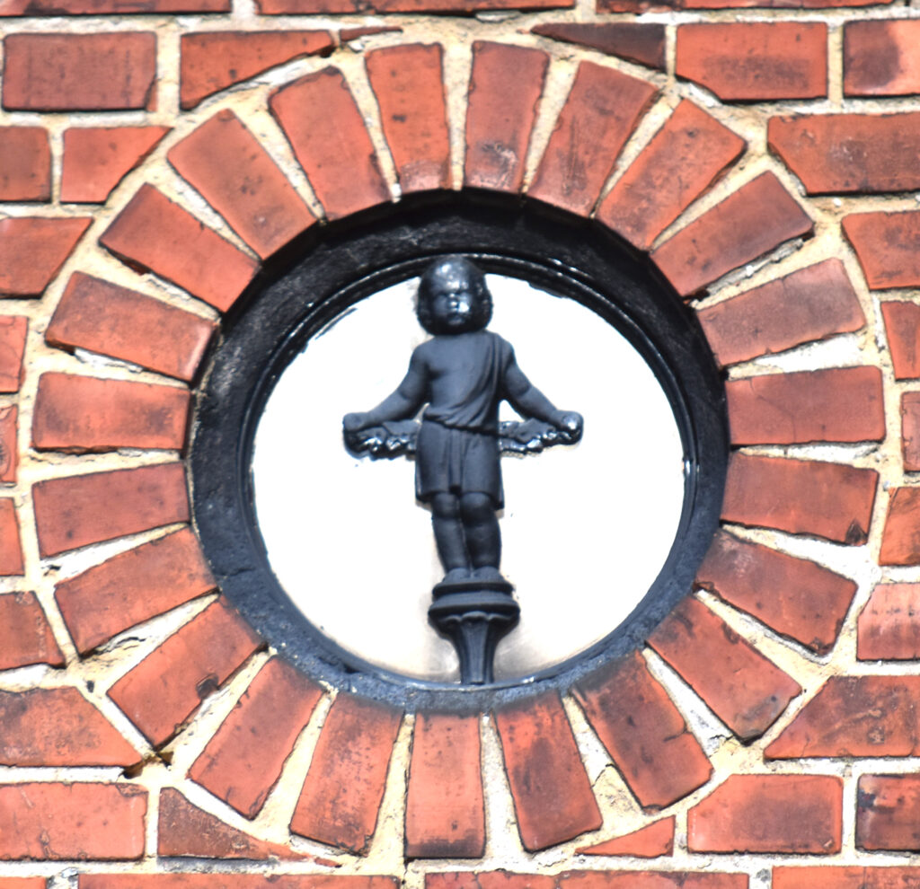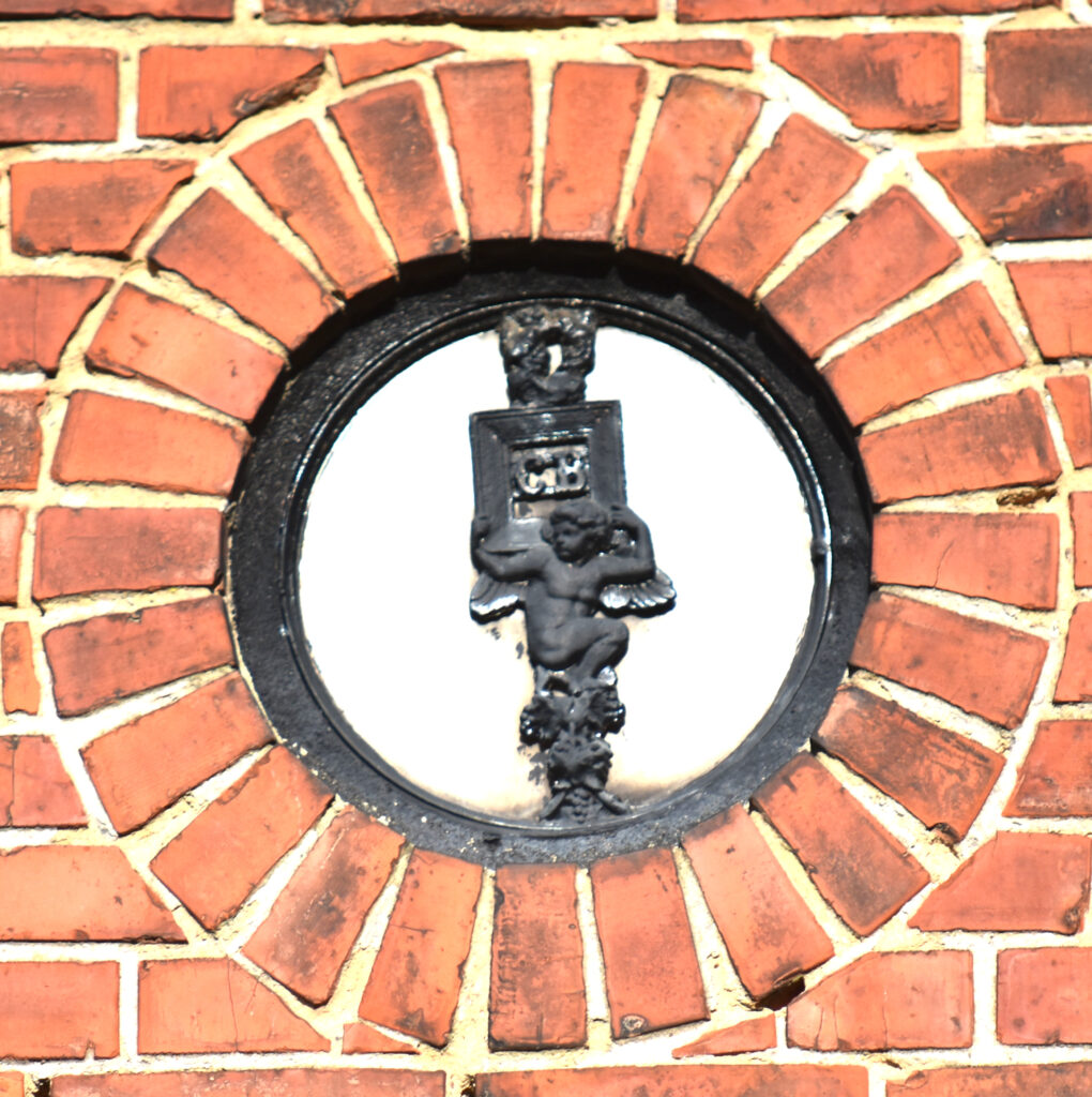 På gaveln finns två små gjutjärnsfönster med figurer där den ena bär en ram med Bernlunds initialer. Utöver en järnspis på Kulturen och gravräcket nedan är detta de enda kända bevarade produkterna från Bernlunds gjuteri.