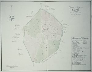 Den har titeln ”Topographia Londarum quam Andreas fecit et delineavit”, (Karta över Lund, gjord och ritad av Andreas) på kartan finns förslag till en ny gatuindelning inlagda, dels med röd färg (tillskrivna ingenjör Nilss Ericksson), dels med blyerts av Andreas. Den svenska riksdagen hade 1641 beslutat att gatunäten i äldre städer efterhand skulle regleras och […]
