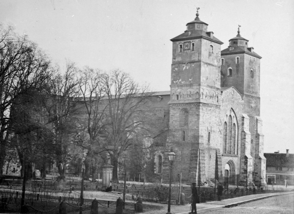 Domkyrkans torn som vi ser dem idag är i sin helhet en skapelse av Helgo Zettervall. Domkyrkans renovering hade under många år letts av C G Brunius. När han med ålderns rätt drog sig tillbaka gick uppdraget till Helgo Zettervall som 1864 lade fram en restaureringsplan som skulle innebära en radikal omgestaltning av domkyrkan. Förslaget kritiserades hårt av Brunius och 1867 beslutade Kungl. Maj:t att endast oundgängligt nödvändiga förändringar skulle genomföras. Genom allehanda ”manövrer”, som Zettervall själv uttryckte det, lyckades dock Zettervall genomdriva stora delar av sitt restaureringsförslag.