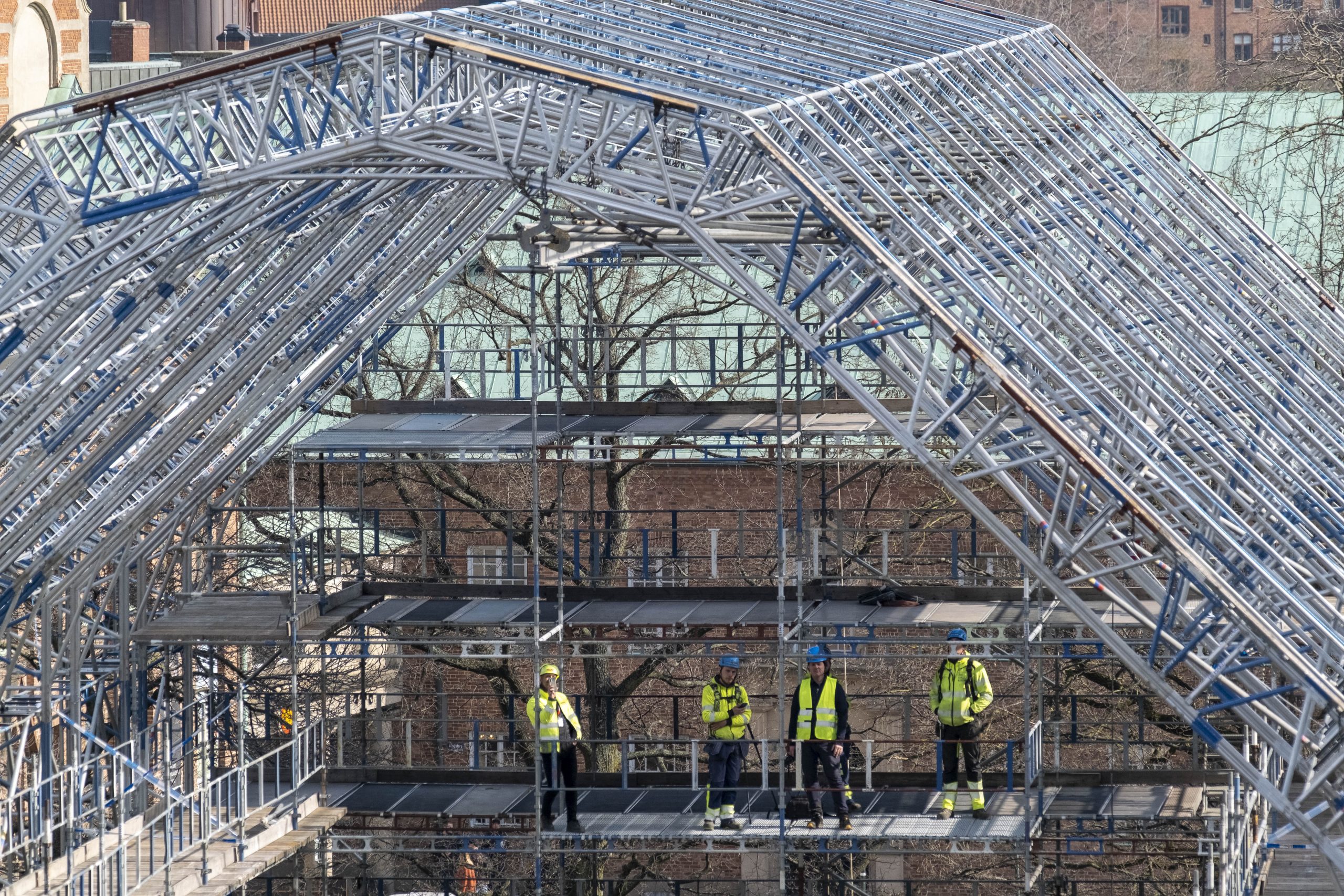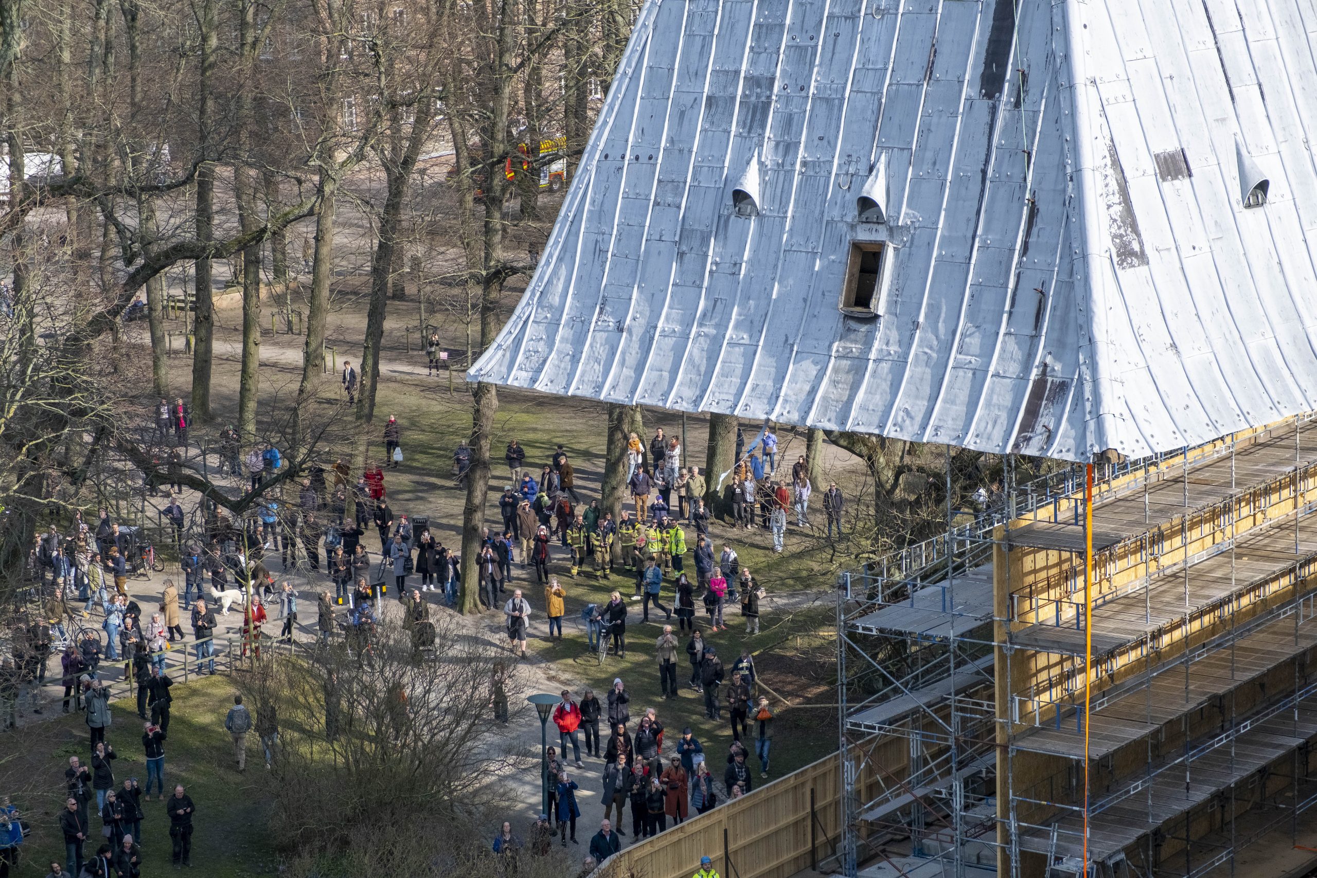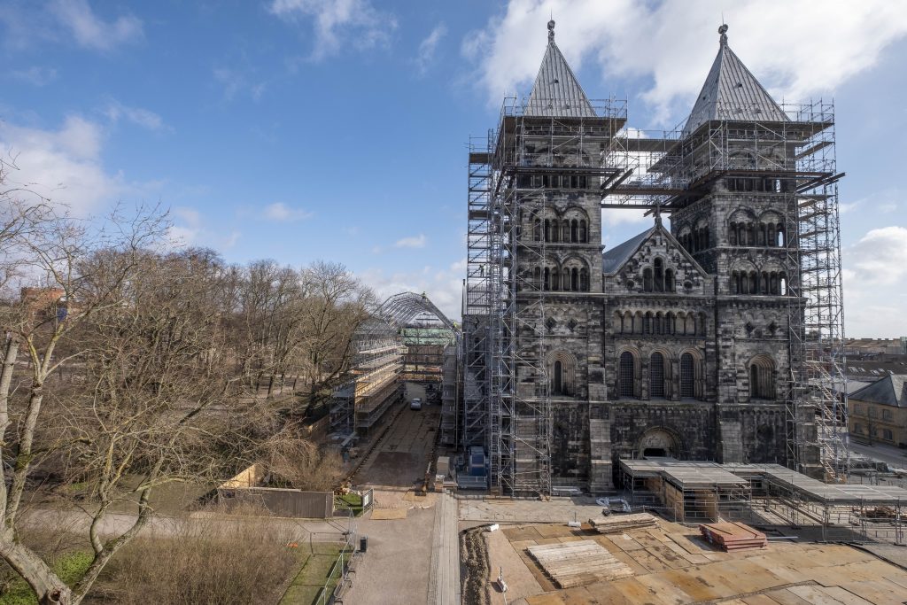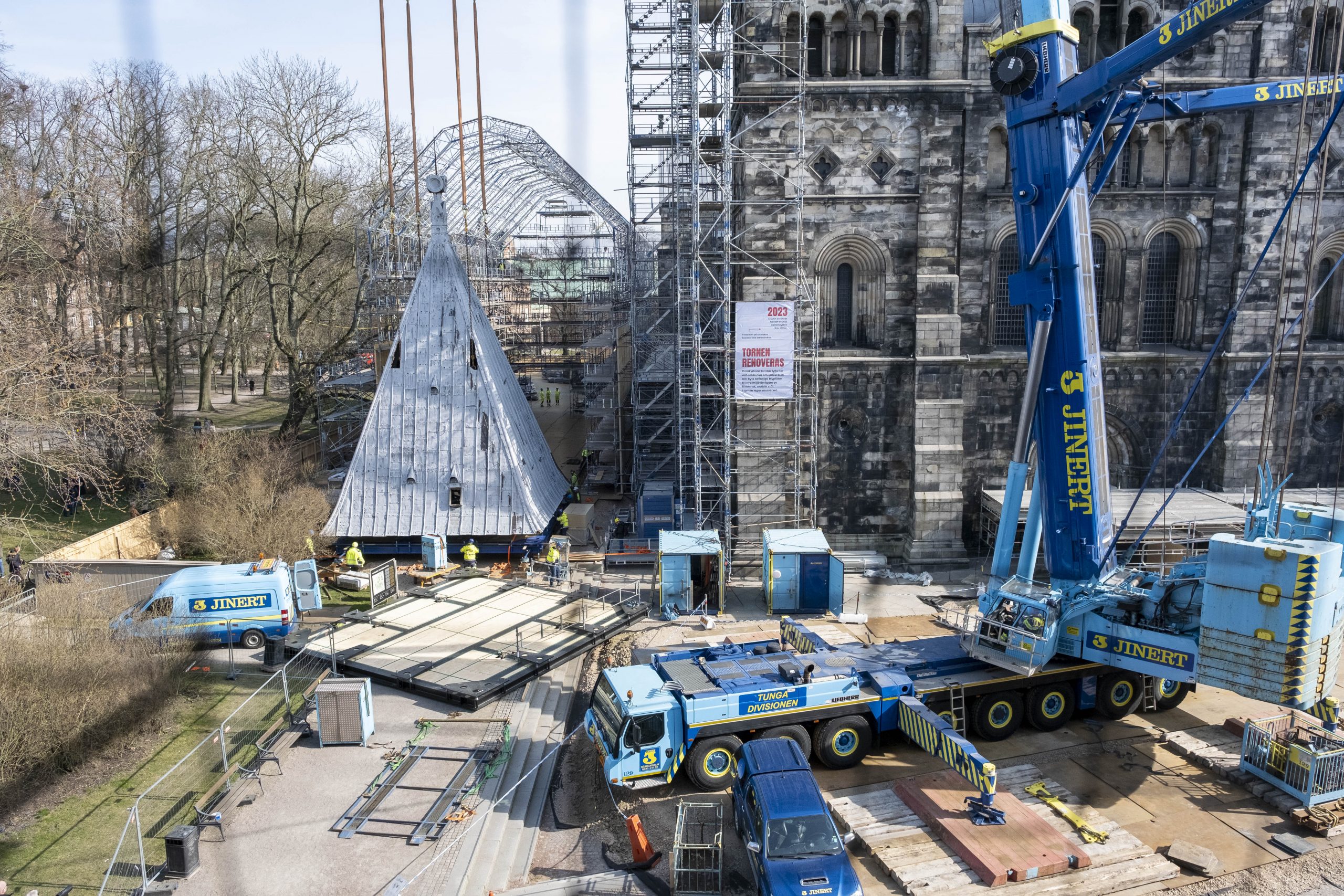 Domkyrkan redo inför nertagningen av norra tornets huva – tisdagen den 22 mars 2022.