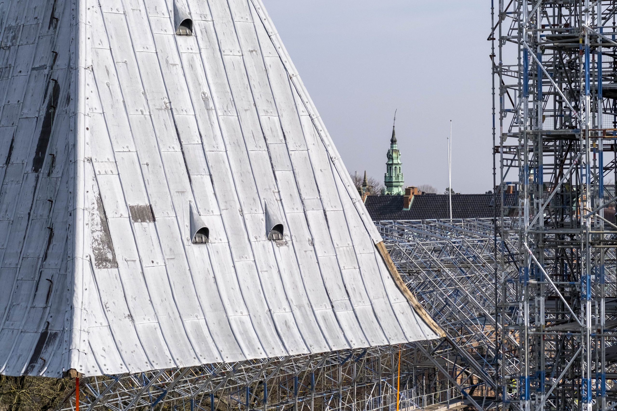 Senast tornen fick nytt blytak var i början på 1900-talet. Tornhuvorna väntas inte vara på plats igen förrän nästa år, då kommer de att ha fått ny plåt. Av miljöskäl blir det inte bly utan förtennat stål som med tiden ska få samma matta nyans som dagens bly. Under tiden kommer murarna att repareras från sidan skador där vatten trängt in. Den södra tornhuvan togs ner dagen efter. Även då hade man tur med vädret.