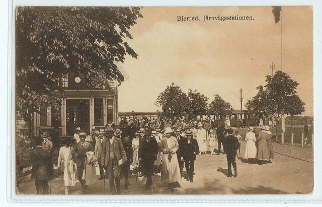 Mittför stationen ledde en pampig bred allé ner till vattnet och den långa bryggan ut till Nya Bjerreds Kallbadhus som var ett stort magnifikt vitmålat träpalats på pålar långt ute i sundet. Mitt i allén låg Bjerreds Saltsjöbad, en som vi tyckte jätteflott sommarrestaurang i gulvit träarkitektur. På sjösidan fanns en stor uteterrass där en blåsorkester brukade spela på söndagseftermiddagarna.