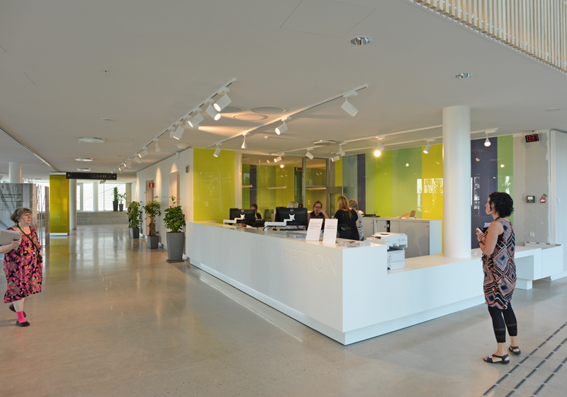 Säkerhetstänkandet gör att kommunhuset inte är helt öppet för allmänheten. I bottenplanet finns en reception och servicekontor för enklare ärendet. Den som vill besöka en tjänsteman måste mötas och följas upp.