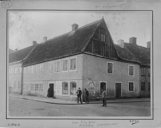 Den korta flygeln i korsvirke vid Sankt Petri kyrkogata byggdes 1862 av dåvarande ägaren skräddare A. Lindskog.