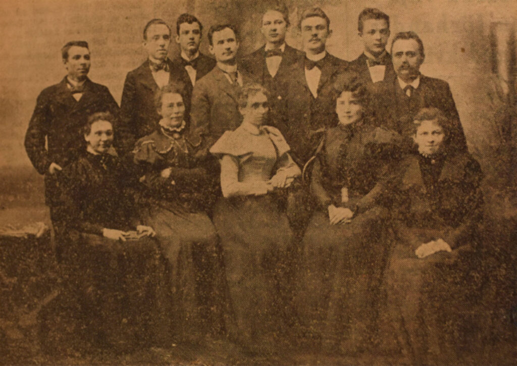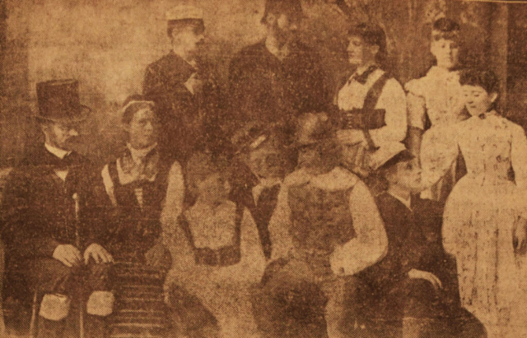 Ensemblen i amatörklubbens första uppsättning av ”Närkingarna” år 1890.