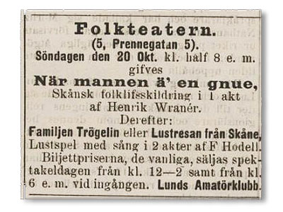 Det fälldes nog en och annan tår dagen när Lunds Amatörklubb försvann. Idag kan det kanske vara svårt att förstå hur mycket den tidens folklustspel och drama betydde för sin publik. Dessa populära nöjen var en av den tidens viktigaste kulturbärare och något som människor från olika samhällsskikt kunde samlas kring. Och inte minst var det ofta en välkommen paus från ganska tuff vardag.