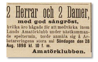 På våren 1888 kom en skådespelare vid namn Stjernberg till Lund. Han kom snart att hålla soaréer på Arbetarringens lokaler på Råbygatan med sång och recitation. Stjernberg var en lång och stilig karl med ett överdimensionerat självförtroende. Utan tillstymmelse till skrupler lät han unga teaterentusiaster betala bara för att umgås med honom, han var ju en ”riktig” skådespelare.