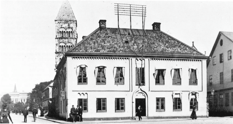 Huset uppfördes 1837 som stadshus av Lunds Stadshus Bolag, för representation och fester och det innehöll även ett hotell. (Hotellfunktionen togs 1899 över av det nya Grand Hotell). Efter en renovering av huset 1899-1900 fick huset benämningen rådhus. Där fanns plats bland annat för drätselkammare, magistrat, uppbördsverk, stadsarkitekt- och stadsingenjörskontor, polis, auktionskammare. Stadsfullmäktige sammanträdde i Knutssalen. Det blev snart alldeles för trångt och 1920 köpte staden en fastighet på Kyrkogatan 11. (Dit flyttade drätselkammarens kansli och expedition, stadsfogdekontoret, folkskolestyrelsen, stadsarkitekt- och stadsingenjörskontoren samt stadsbiblioteket och texten STADSHUSET sattes upp på fasaden).