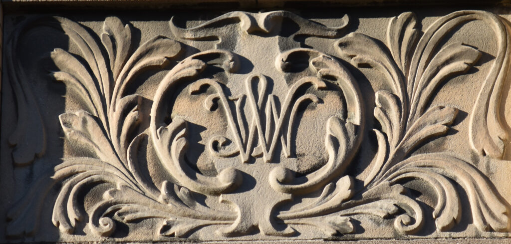 Östra Vallgatan 45 från 1916. Nere till höger mönsterplatta med initialerna JNW.