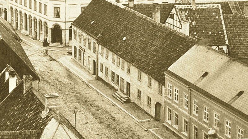 Ovanför markiserna på grannhuset i söder sitter texten ”Philip Lindstedt Bok- Musik- & Pappers-handel”. Lindstedt har drivit sin butik sedan 1872.