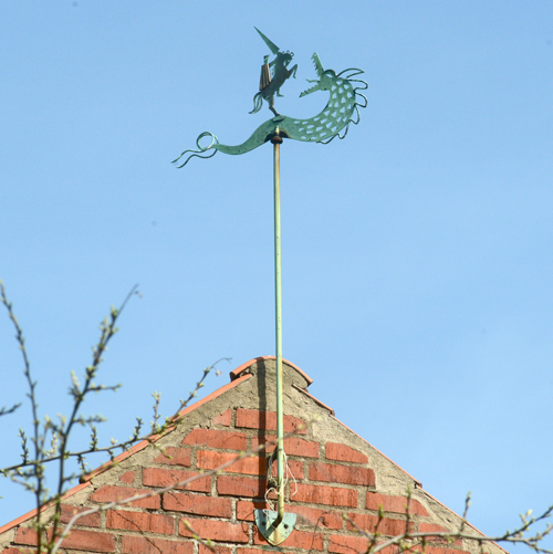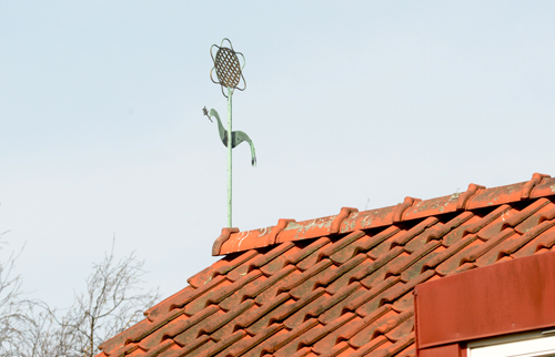 Linnéstaden uppfördes 1945-48. Förutom en Nalle Puh utklippt i plåt finns tre eleganta vindflöjlar från 1948 att studera. De är troligen ritade av sina byggnaders arkitekt Jörgen Adler Nissen och föreställer i tur och ordning en blomma med en fredsduva under, en tupp och Sankt Göran med draken. Den fjärde har förlorat sin flöjel.