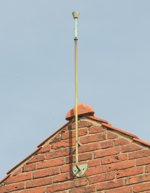 Nyttan med vindflöjlar på landbacken och i staden kan starkt ifrågasättas. Det är fråga om status- och reklammarkörer. Idag kan den som vill följa vädret sätta upp en komplett meteorologisk mätstation och avläsa resultaten på en dataskärm. Som framgår är vindflöjeln pytteliten. På den kan inget meddelas i det offentliga rummet. Bilden är från Botaniska trädgården.